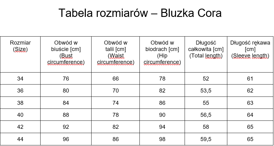 Cora to elastyczna bluzka z dzianiny, która subtelnie zbiera sylwetkę, tworząc kobiecą linię talii. Marszczenia na wysokości ramion płynnie przechodzą w delikatne wymarszczenia w talii, nadając bluzce nowoczesny, nieoczywisty fason.