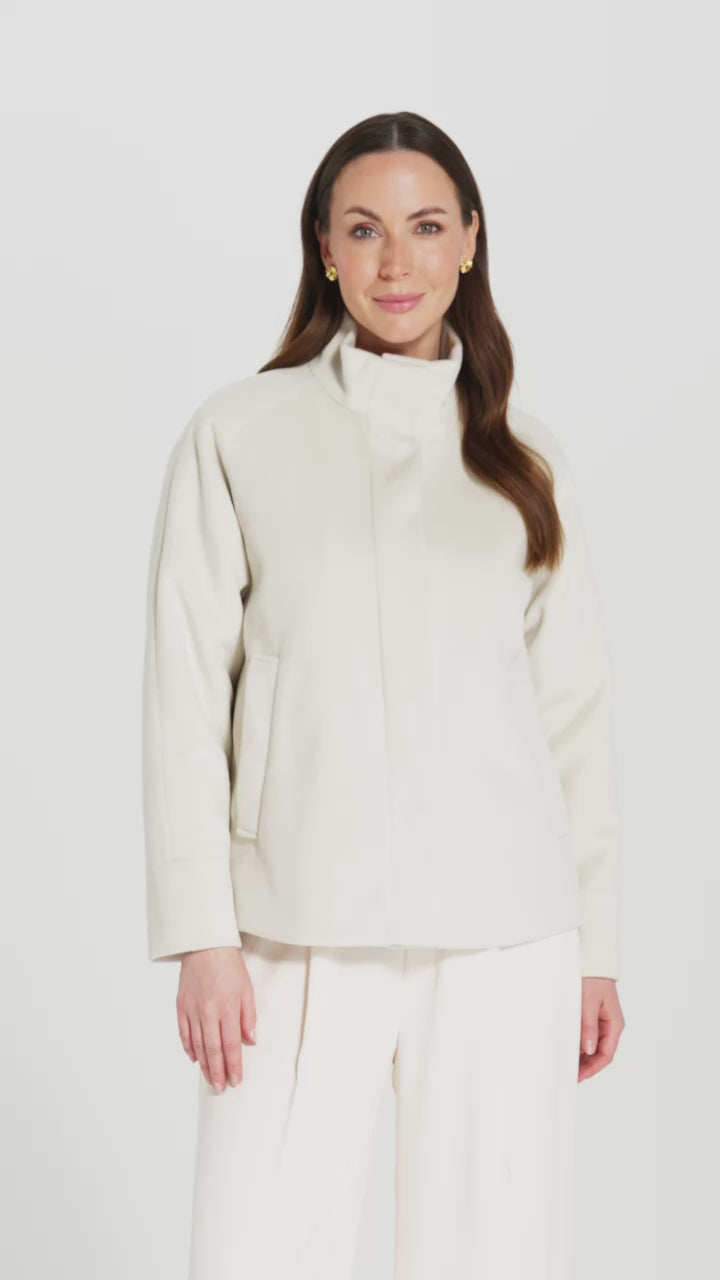This shorter wool jacket is perfect for when you need something simple yet unique. The hip-length cut , with a slightly longer back , creates a slight asymmetry—a subtle twist that adds character and drapes beautifully. The straight front , free from unnecessary elements, fastens with our signature hidden snaps —minimalist and clean.