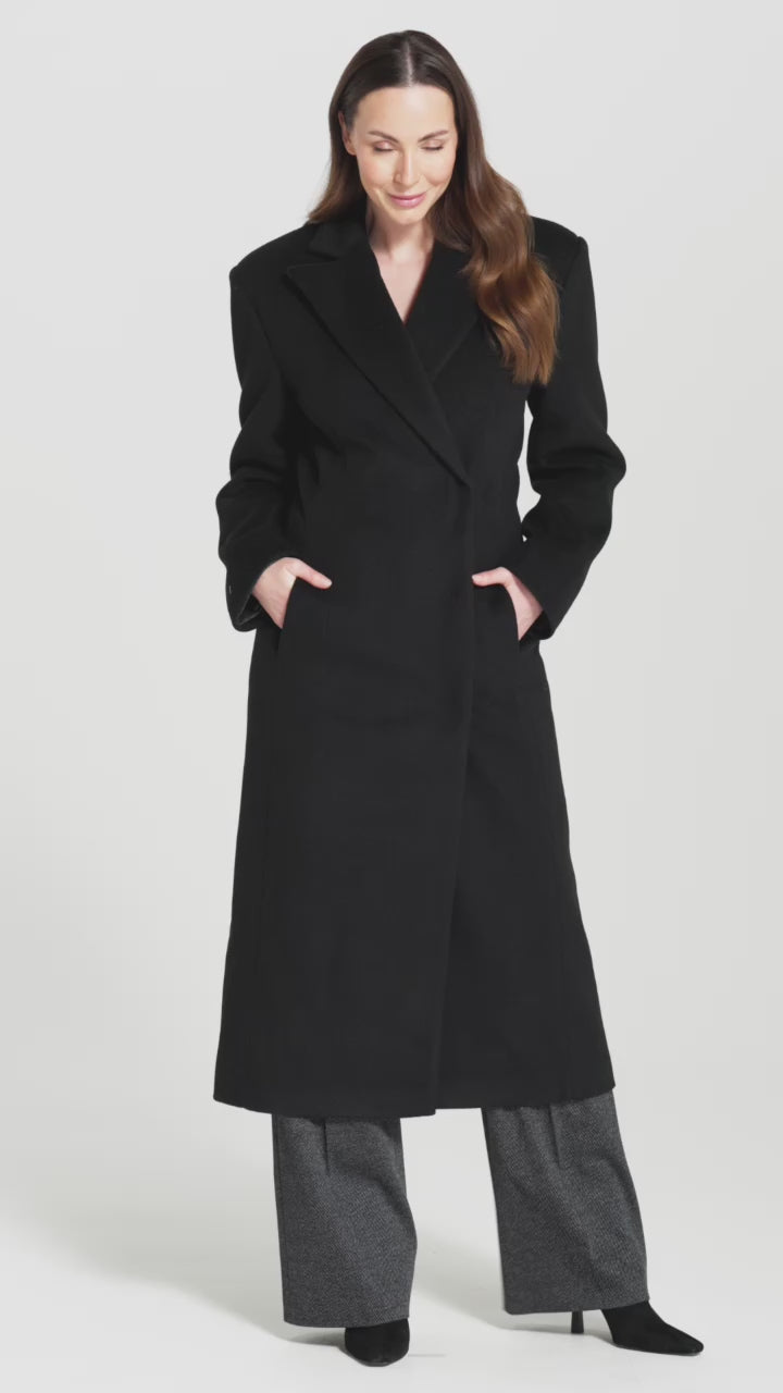 This is Salme's most fitted coat. Designed to flatter the female silhouette, not hide it. Perfect for an hourglass figure—or for any woman who wants to show off a defined waist and a confident curve.