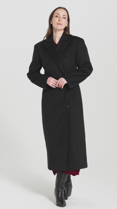 This is Salme's most fitted coat. Designed to flatter the female silhouette, not hide it. Perfect for an hourglass figure—or for any woman who wants to show off a defined waist and a confident curve.