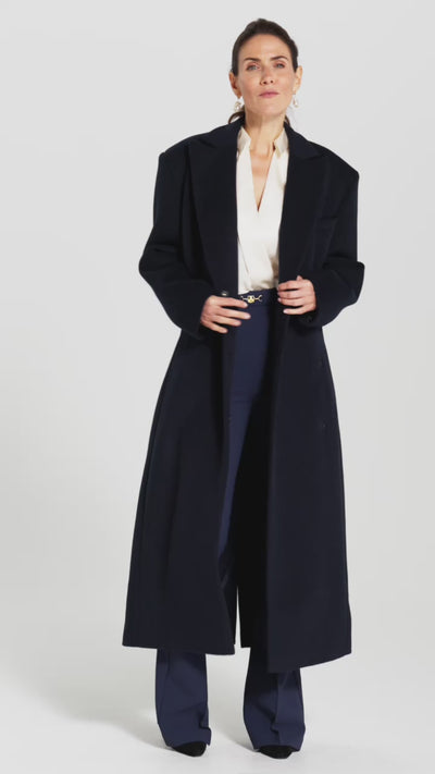 This is Salme's most fitted coat. Designed to flatter the female silhouette, not hide it. Perfect for an hourglass figure—or for any woman who wants to show off a defined waist and a confident curve.