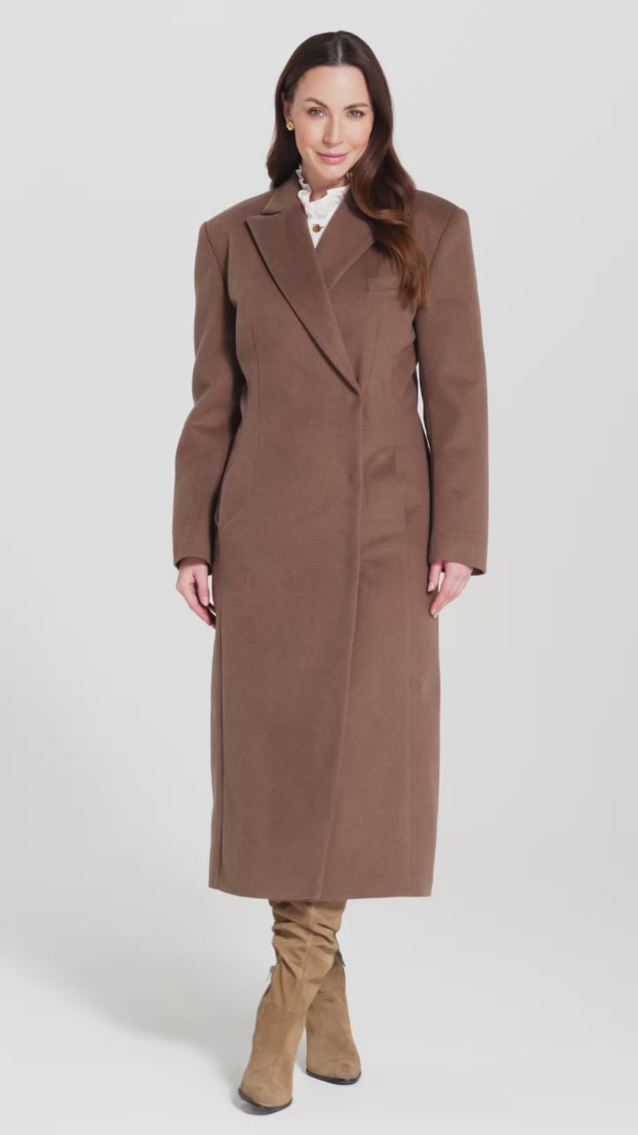 This is Salme's most fitted coat. Designed to flatter the female silhouette, not hide it. Perfect for an hourglass figure—or for any woman who wants to show off a defined waist and a confident curve.