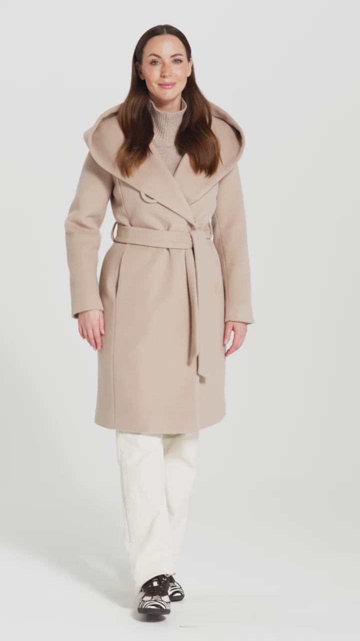 The large, deep hood is more than just a practical element. It protects against the wind but also creates a distinct line—especially when rolled up. It then forms a striking stand-up collar , which not only warms but also shapes the silhouette and gives the coat character. It's a detail that catches the eye but never dominates. The midi length , reaching mid-calf, adds elegance and ensures perfect proportions.