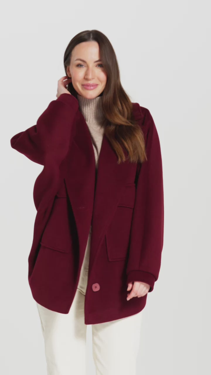 Omena is a short coat with character. It has an unusual silhouette – wide at the waist, fitting at the hem, creating the effect of a soft, enveloping apple.