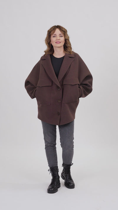 Omena is a short coat with character. It has an unusual silhouette – wide at the waist, fitting at the hem, creating the effect of a soft, enveloping apple.