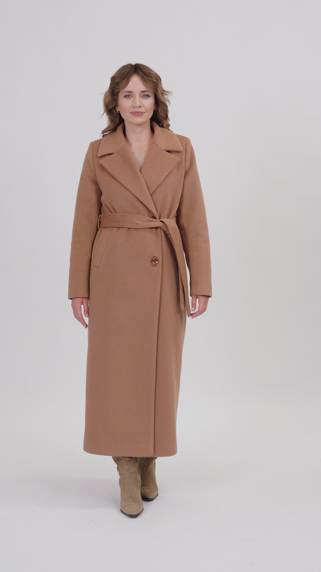 It has everything a classic should have – and not an ounce of unnecessary frills. The maxi length elongates the silhouette. The lapels and collar maintain the line. Two buttons, one below the other, make a strong statement – but beneath them we've hidden a unique snap closure that organizes the whole and ensures a clean design.