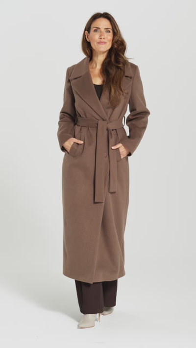 It has everything a classic should have – and not an ounce of unnecessary frills. The maxi length elongates the silhouette. The lapels and collar maintain the line. Two buttons, one below the other, make a strong statement – but beneath them we've hidden a unique snap closure that organizes the whole and ensures a clean design.