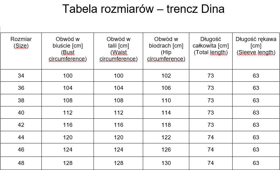 Krótsza długość, nie sięgająca za pupę, nadaje całości lekkości i nowoczesnego charakteru, dzięki czemu Trencz Dina doskonale sprawdzi się zarówno w eleganckich, jak i codziennych stylizacjach. To propozycja dla kobiet, które cenią klasyczne detale w świeżym, współczesnym wydaniu.